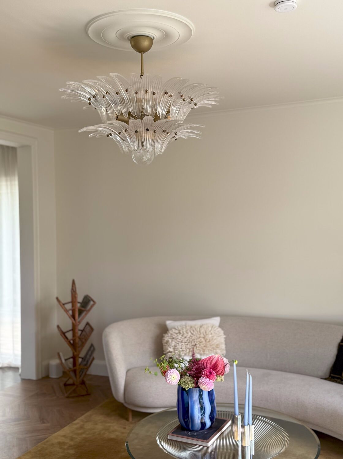 The total height can be customized down to 57 cm when the chain is removed, making it adaptable for various ceiling heights. A timeless Murano centrepiece that blends Italian craftsmanship with versatile functionality.